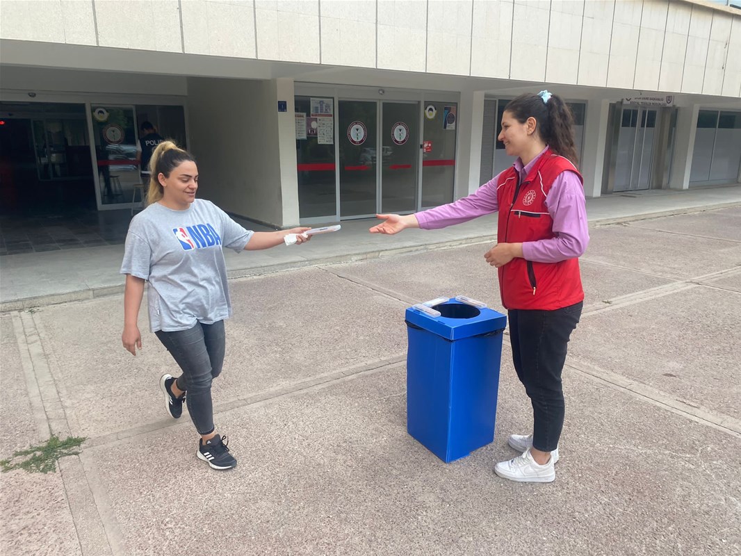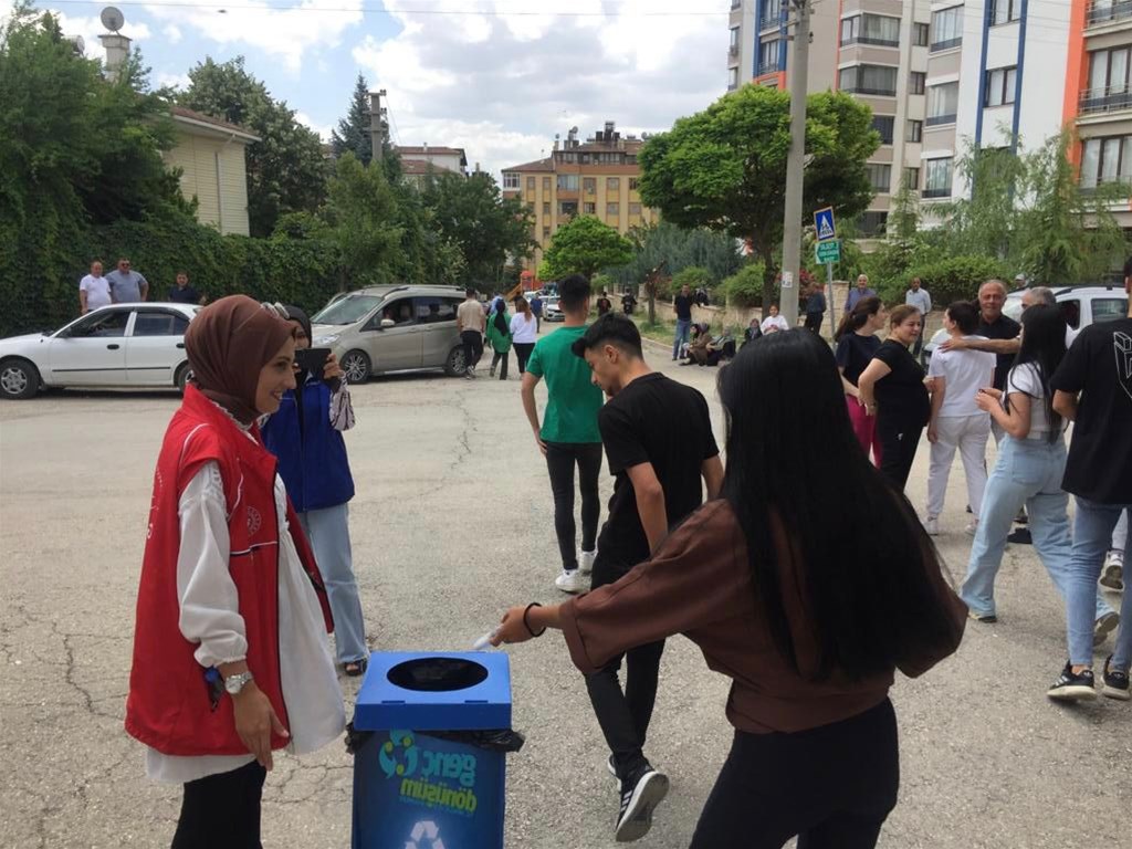 Gençlik ve Spor Bakanlığının ''Tek Kullanımlık Sanma Sakın Çöpe Atmaya Kalkma'' sloganıyla başlattığı ''Genç Dönüşüm'' projesi kapsamında YKS’nin yapıldığı sınav merkezlerinin önüne gitti.