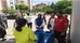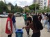 Hazırladıkları geri dönüşüm kutuları ile sınav merkezi önünde sınava giren adaylardan ÖSYM'nin dağıttığı sınav setlerindeki kalem, silgi ve kalemtıraşları talep etti.