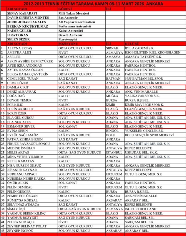 Hentbol Milli takım kampına çağrılan sporcularımız: